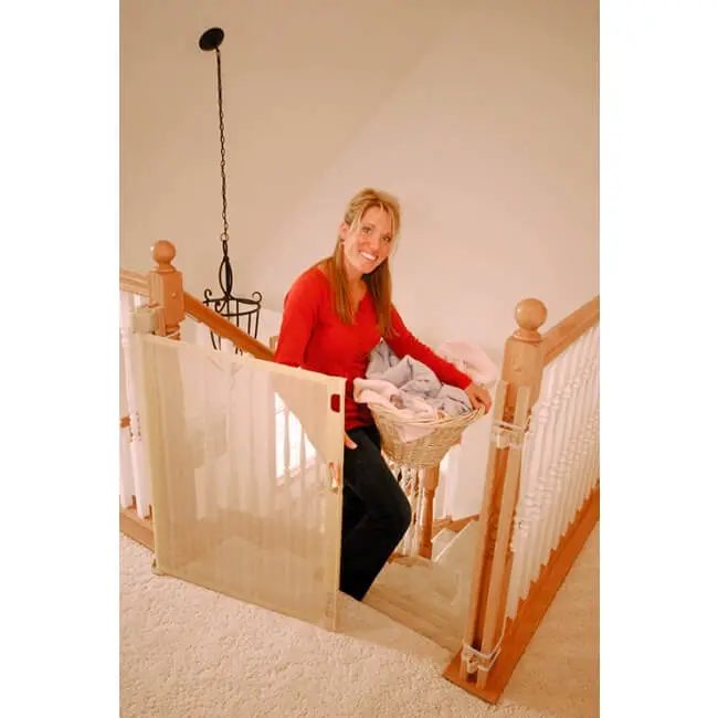Baby Safety Alliance (formerly JPMA) verified for both top and bottom of stairs, the Retract-A-Gate automatically retracts into a compact 3-inch roll when not in use, eliminating the bulky appearance of traditional gates. The childproof dual-action push and turn knob allows true one-hand operation while maintaining childproof security that keeps little ones safe.