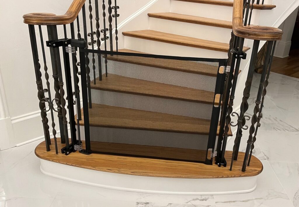 Retract-A-Gate installs in virtually any stairway configuration. The universal mounting system works between two walls, two banisters, or a combination of wall and banister. You can mount it within doorways, around corners, or at any angle your stairway requires.