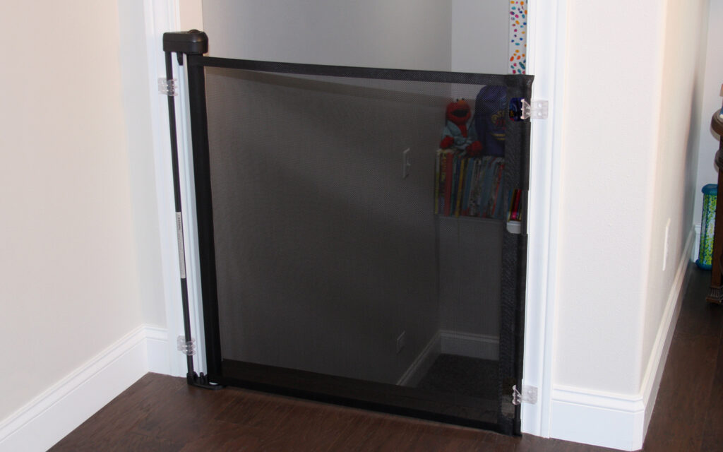 At 34-inch mesh height (38 inches to the top of the locking mechanism), Retract-A-Gate is designed to be among the tallest gates available in its class, and the taut mesh when locked makes it difficult to push down. The tightly woven mesh fabric has minimal spacing, preventing toddlers from gaining footholds needed for climbing.